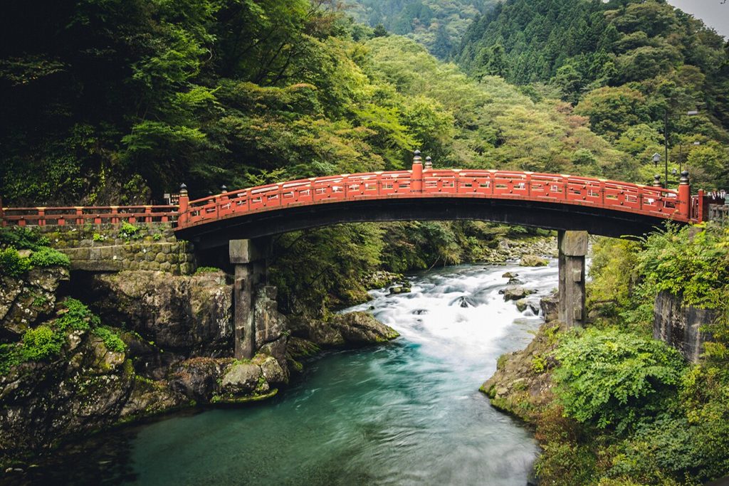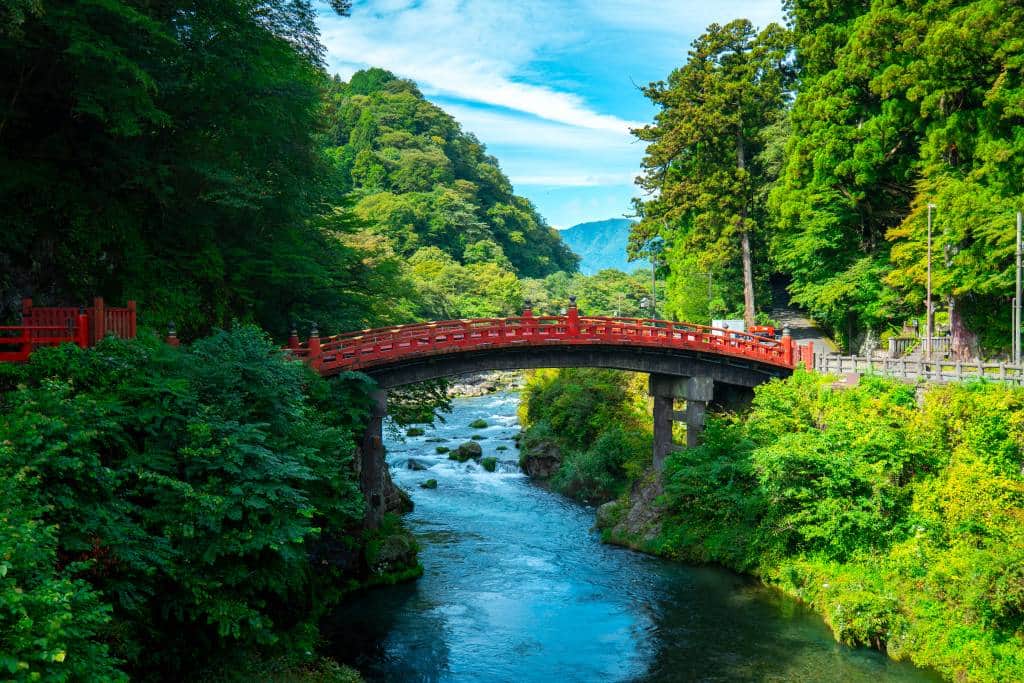 Embark on a journey across the revered Shinkyo Bridge, a 28-meter-long structure known as one of Japan’s top three bridges. Framed by vermilion lacquer and surrounded by lush foliage, this bridge serves as the sacred gateway to Nikko, capturing the essence of its natural beauty.